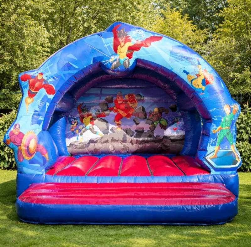 Blast off with the extraordinary super hero themed bouncy castle now available to hire across Newmarket, Bury St Edmunds, Cambridge, Ely and Surrounding areas.